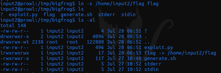 심볼릭 링크를 이용해 flag 파일에 링크를 걸자.